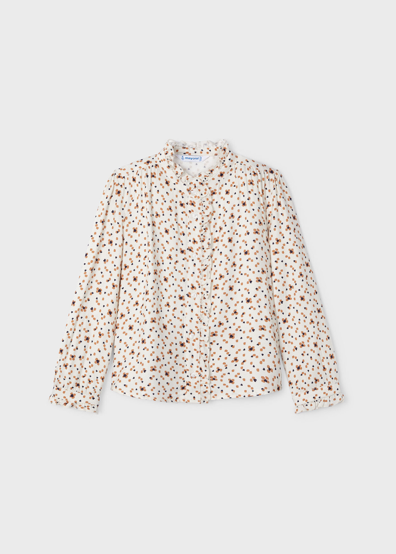 Kız Çocuk Volanlı Baskılı Bluz Bej