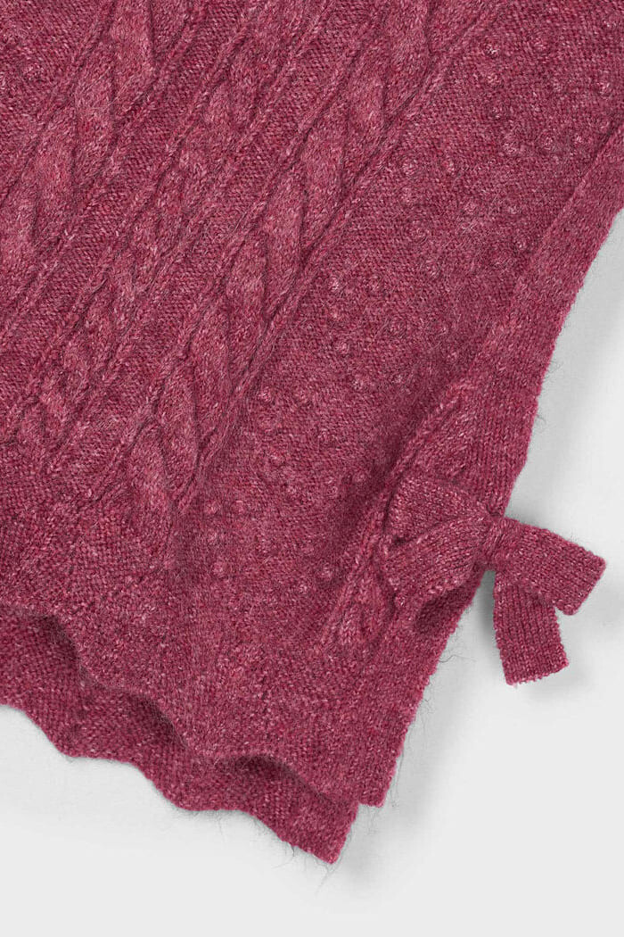 Örgü detaylarının zarafetini sevimli bir tasarımla birleştiren bu süveter, soğuk mevsimlerin en şık katmanlarından biridir. Yumuşak, sıcak ve esnek triko kumaşı, gün boyu konforlu bir kullanım sunar. Süveterin ön kısmındaki klasik saç örgüsü deseni zamansız bir şıklık katarken, yanlarındaki fiyonk detayları tasarıma eğlenceli ve özgün bir dokunuş ekler. Dalgalı kesim etek ucu ile feminen bir duruş sergileyen bu parça, gömlekler ve bluzlar üzerine giymek için mükemmeldir.