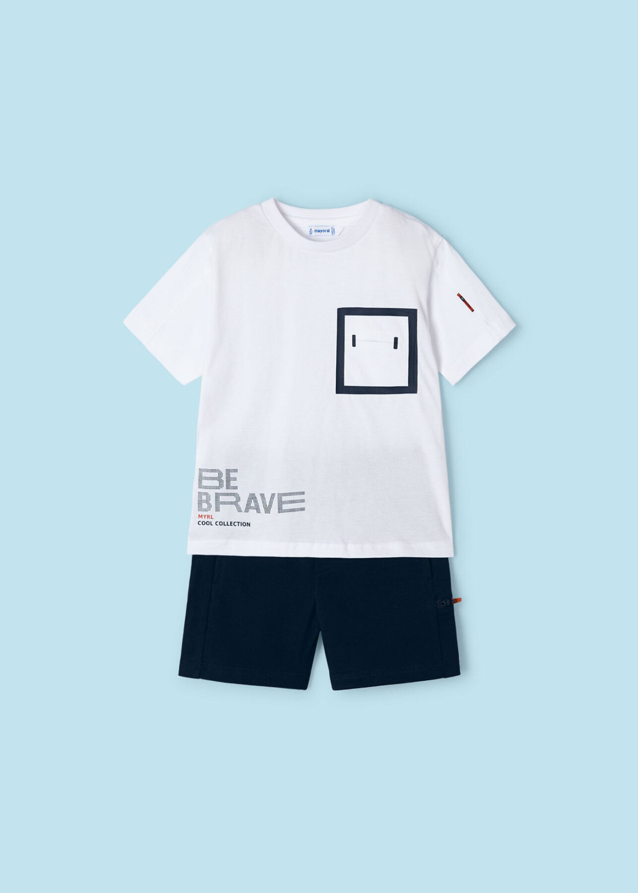 Erkek Çocuk Tişört Şort Set-Beyaz