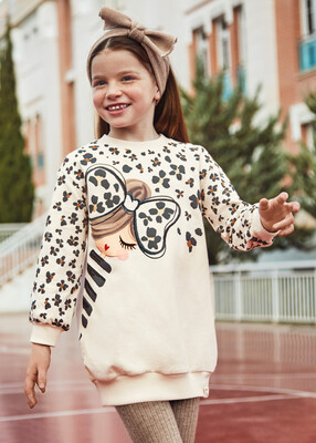 Kız Çocuk Baskılı Sweat Elbise-Bej