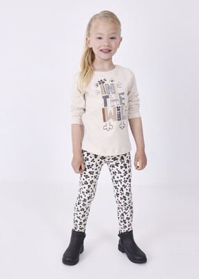 Kız Çocuk Baskılı Tayt-Krem