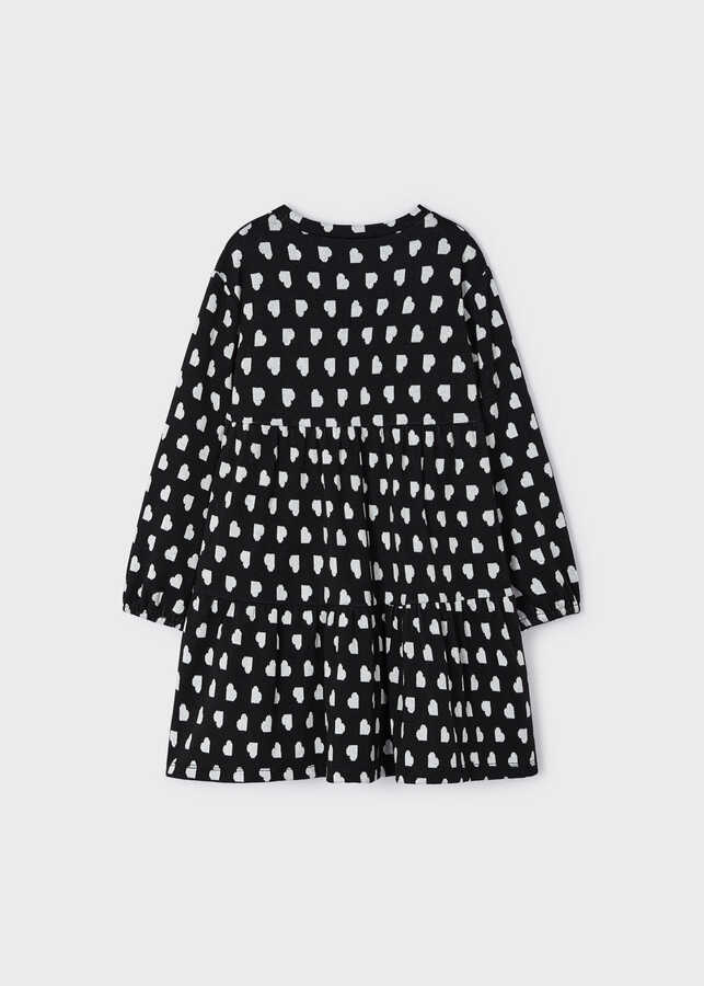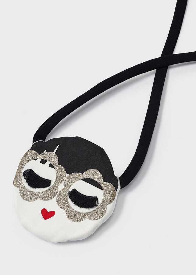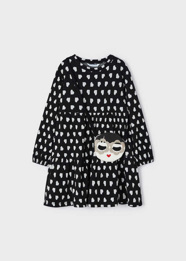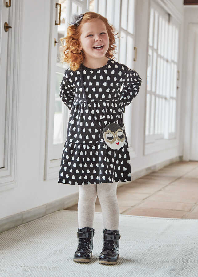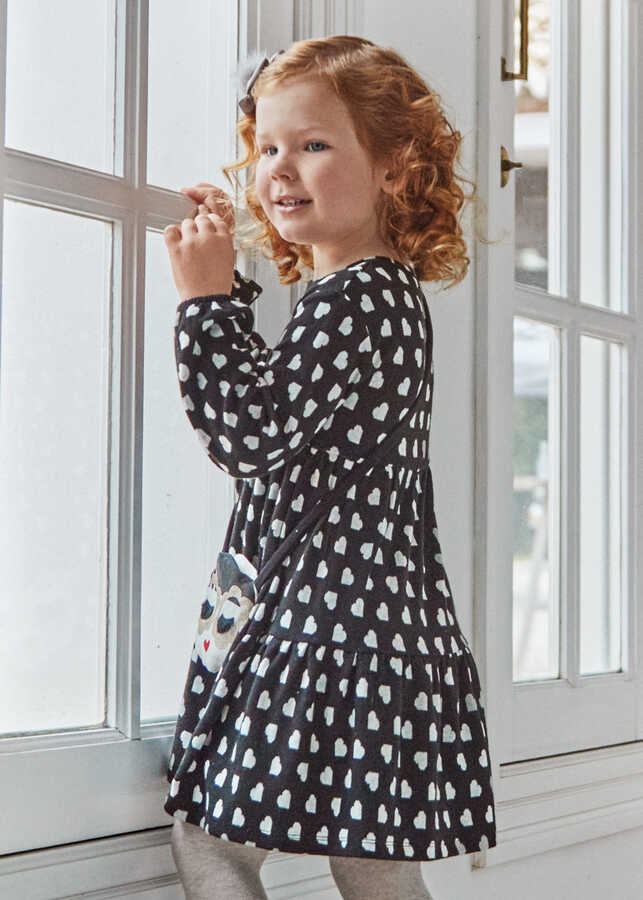 Kız Çocuk Çantalı Kalp Desenli Elbise-Siyah