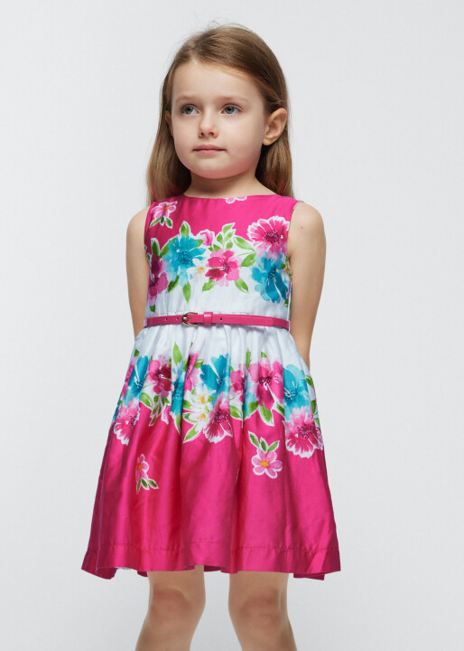 Kız Çocuk Çiçekli Elbise-Fuşya