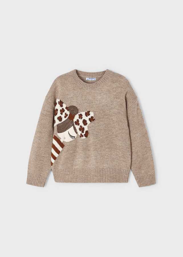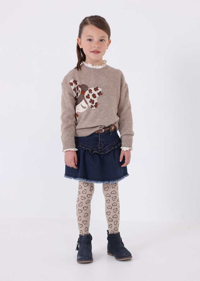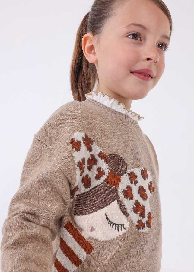 Kız Çocuk Desenli Triko Kazak-Bronz