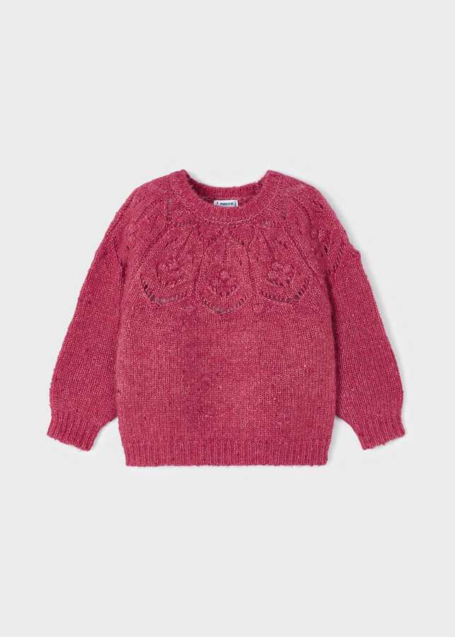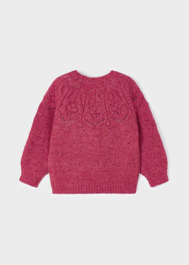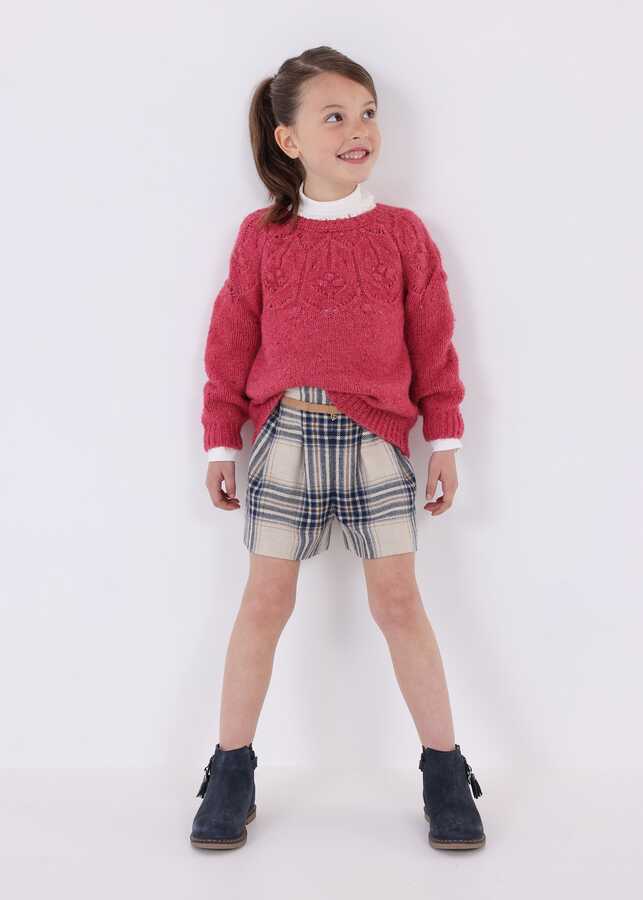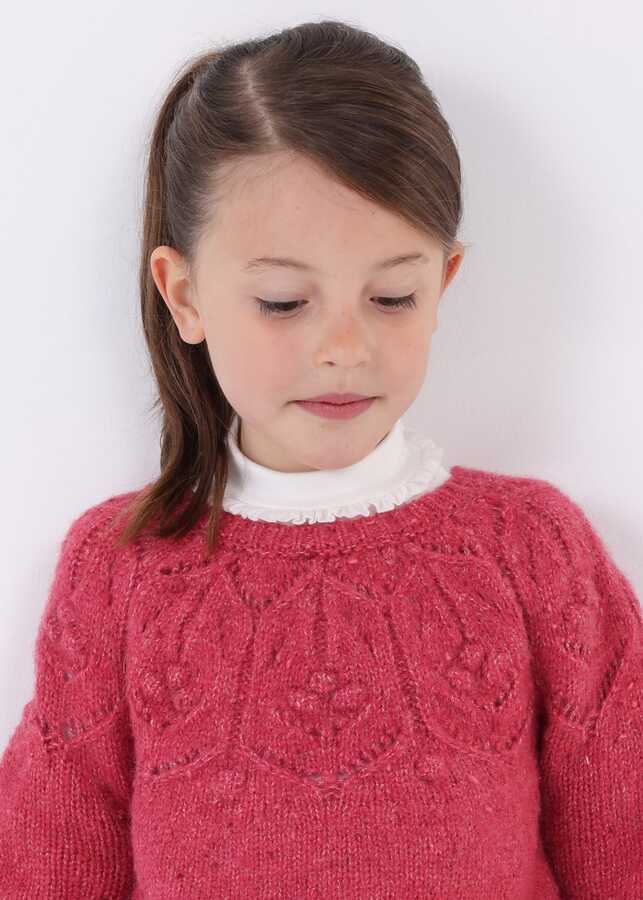 Kız Çocuk Desenli Triko Kazak-Kırmızı