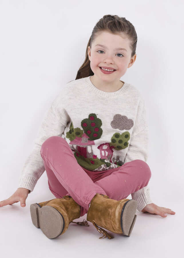 Kız Çocuk Desenli Triko Kazak-Pembe