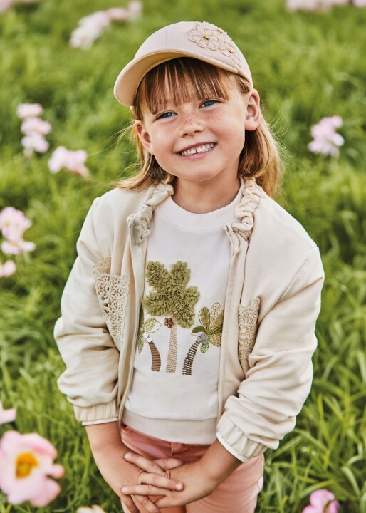 Kız Çocuk Fermuarlı Sweashirt-Bej
