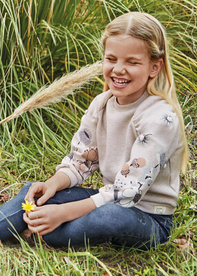 Kız Çocuk İşlemeli Sweatshirt-Bej