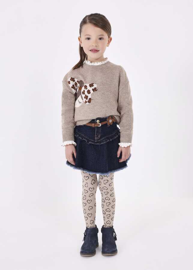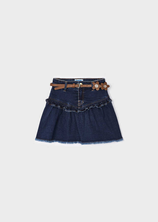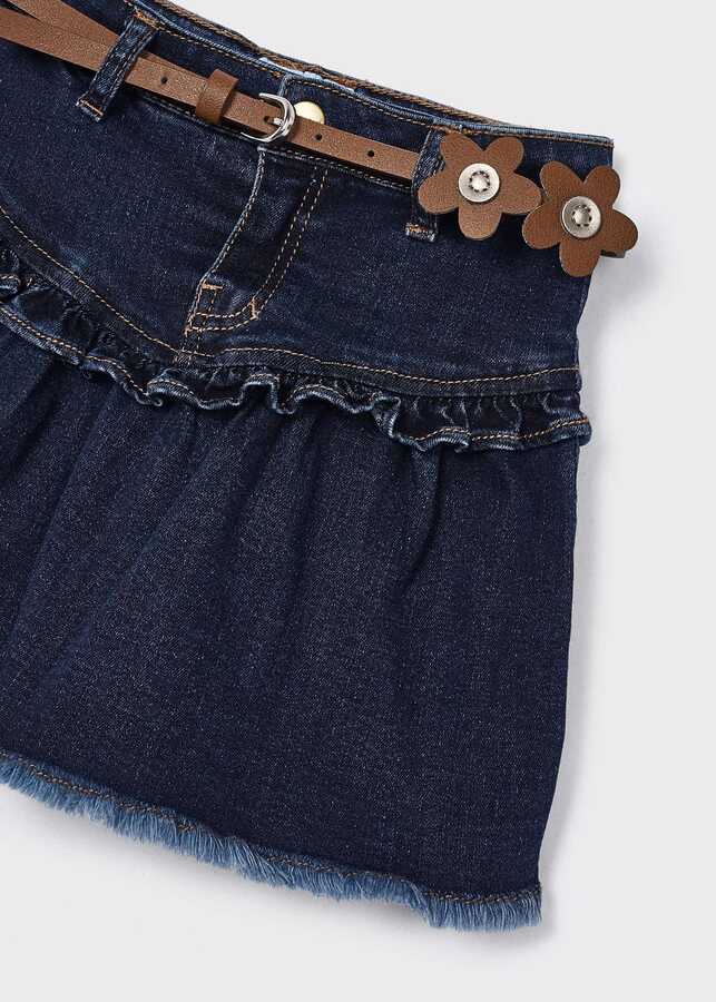 Kız Çocuk Kemerli Kot Etek-Lacivert
