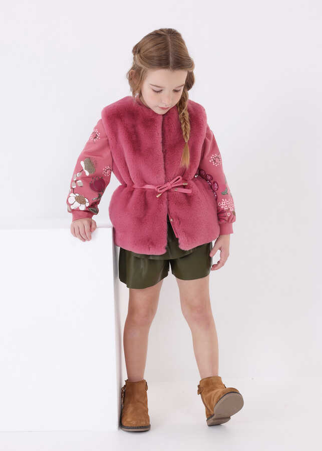 Kız Çocuk Kürklü Yelek-Pembe