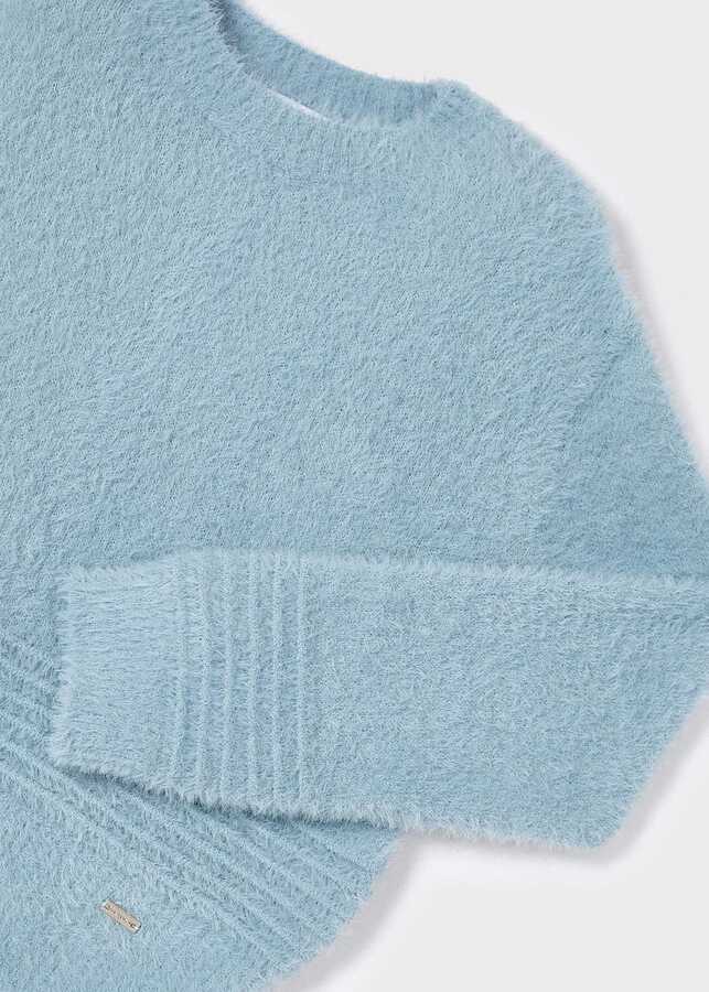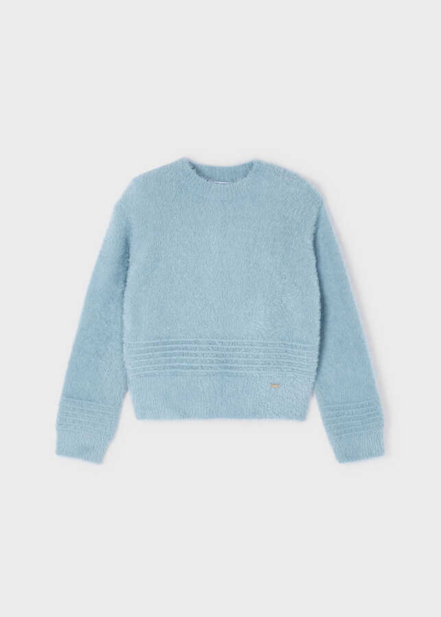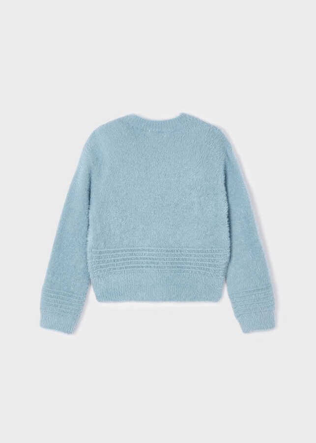 Kız Çocuk Peluş Triko Kazak-Mavi