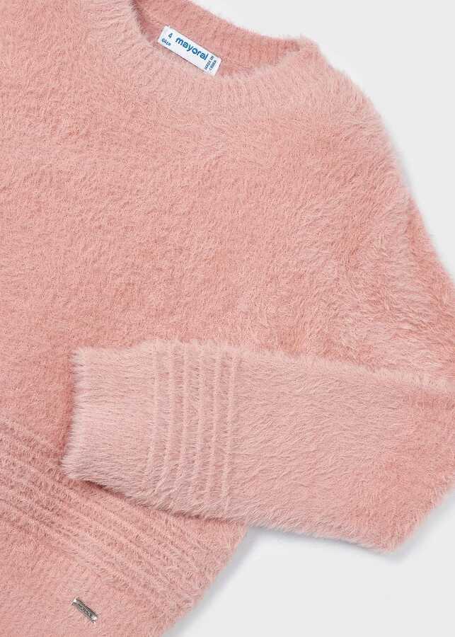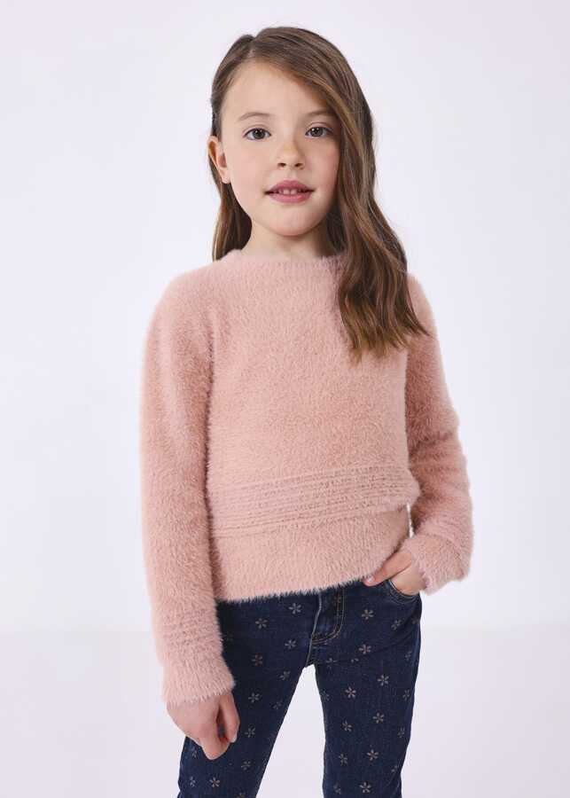 Kız Çocuk Peluş Triko Kazak-Pudra Pembe
