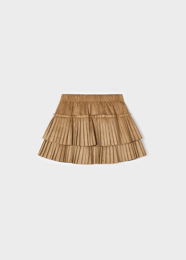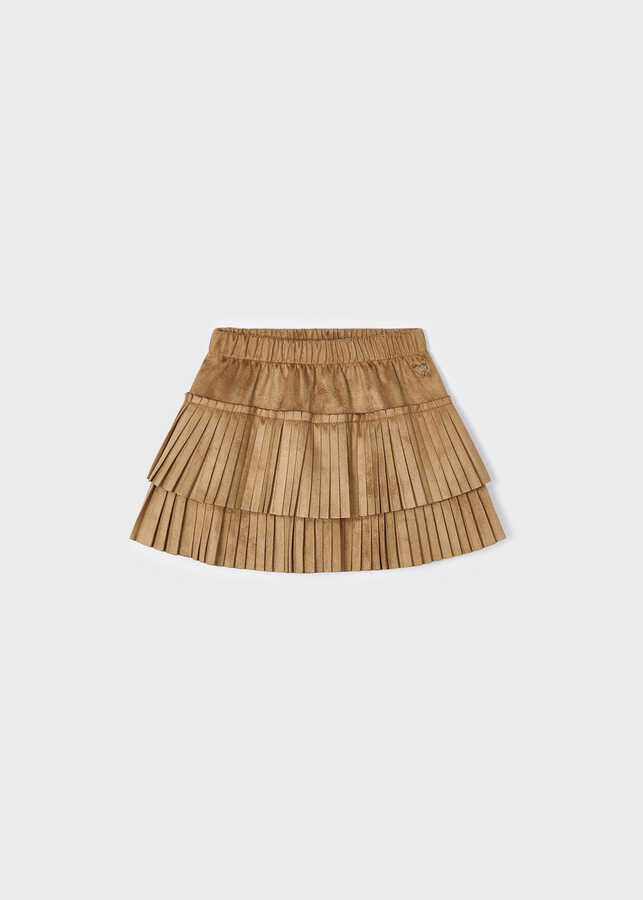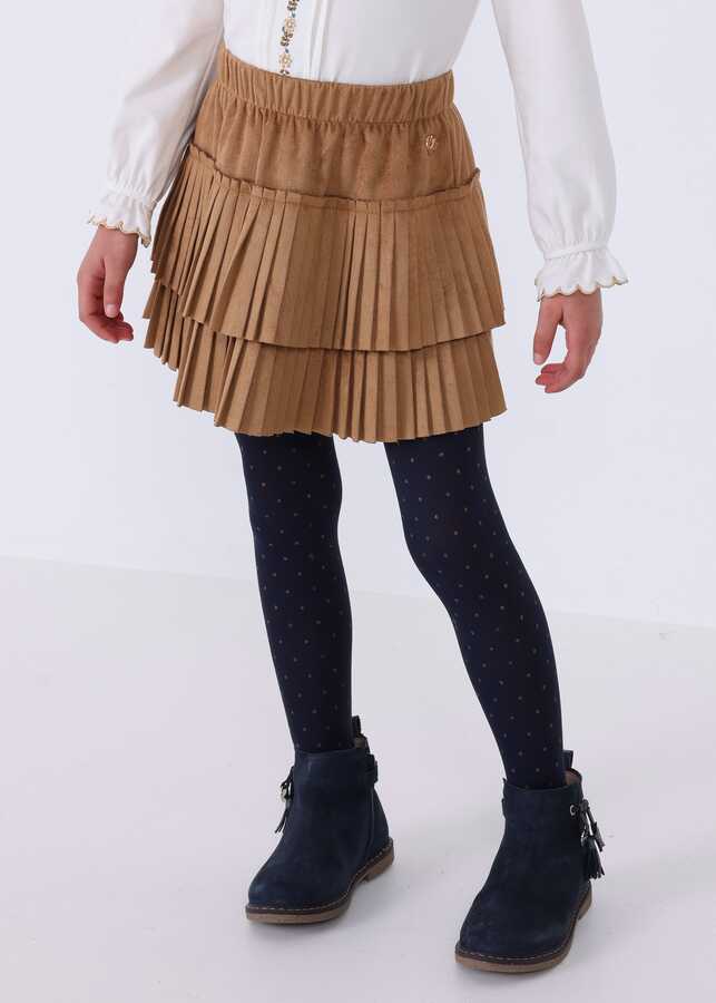 Kız Çocuk Piliseli Süet Etek-Kahve