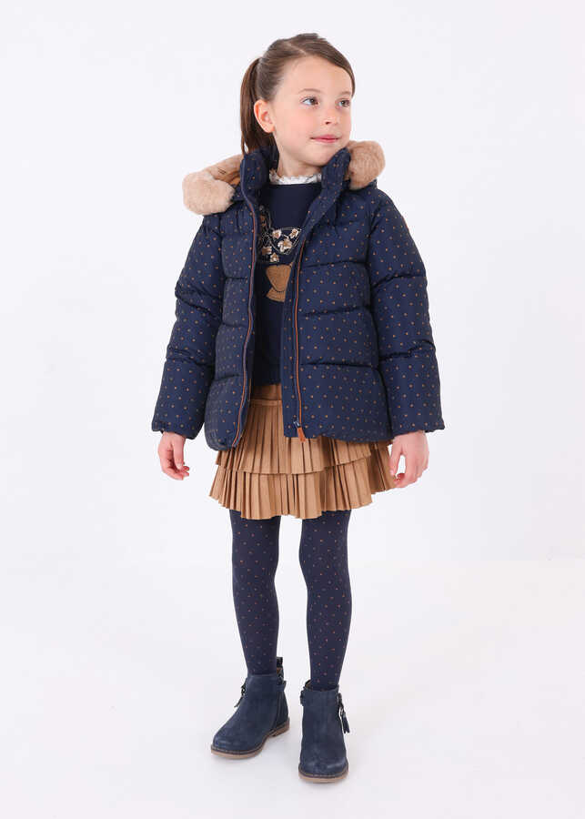 Kız Çocuk Puantiyeli Şişme Mont-Lacivert