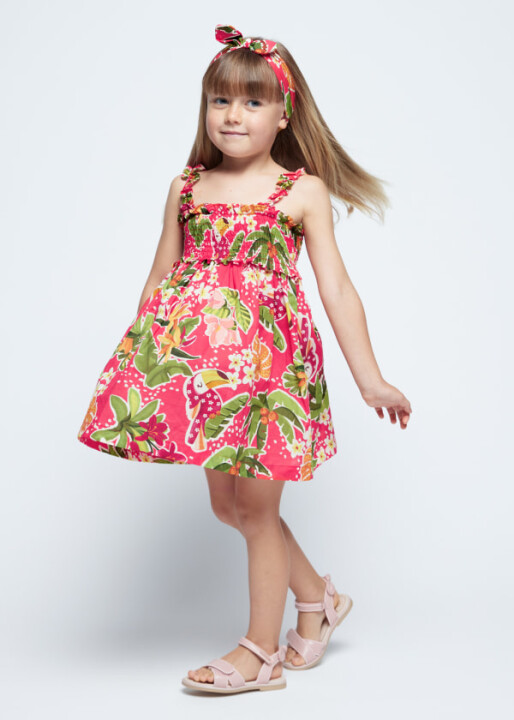 Kız Çocuk Saç Bantlı Elbise-Kırmızı