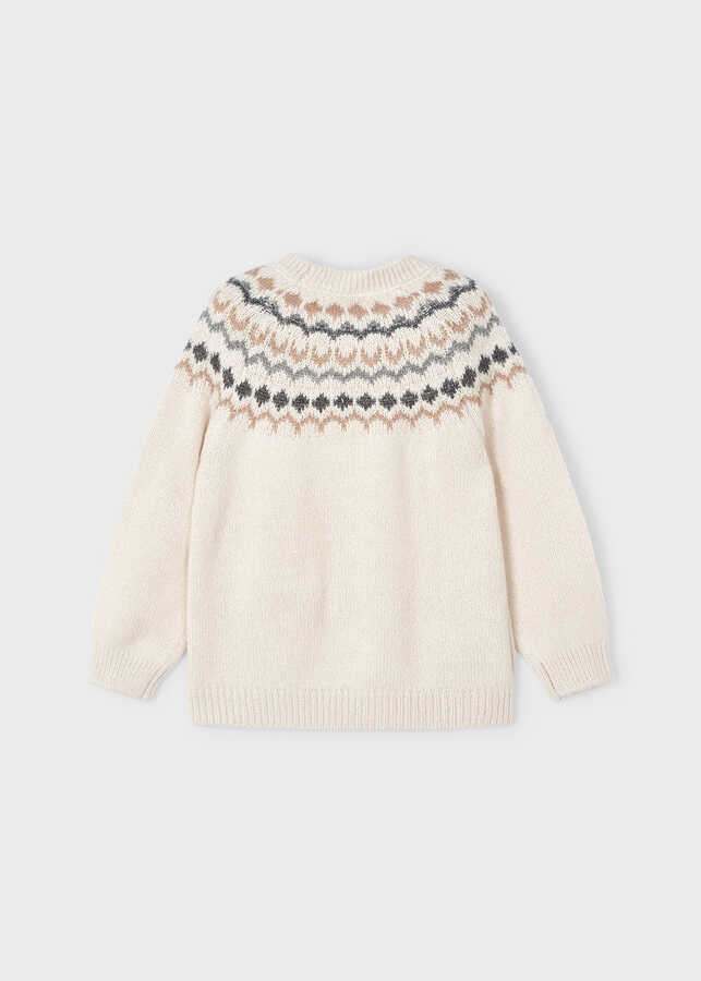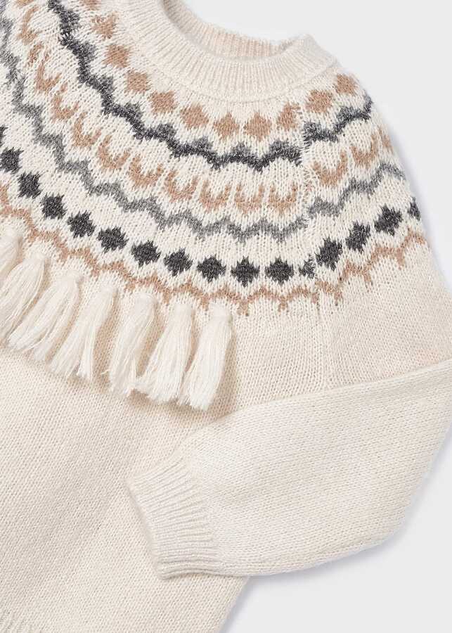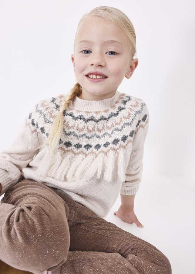 Kız Çocuk Simli Önü Püsküllü Triko Kazak-Bej