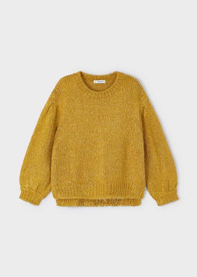 Kız Çocuk Simli Triko Kazak-Hardal
