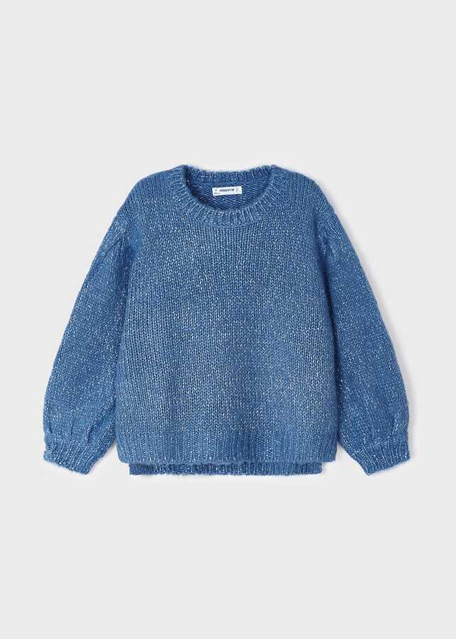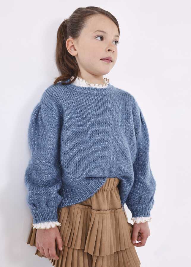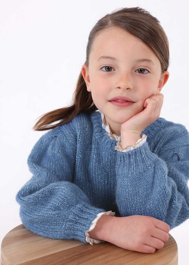Kız Çocuk Simli Triko Kazak-Mavi