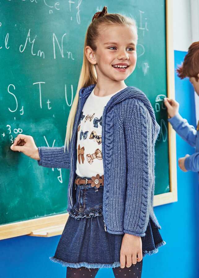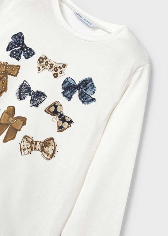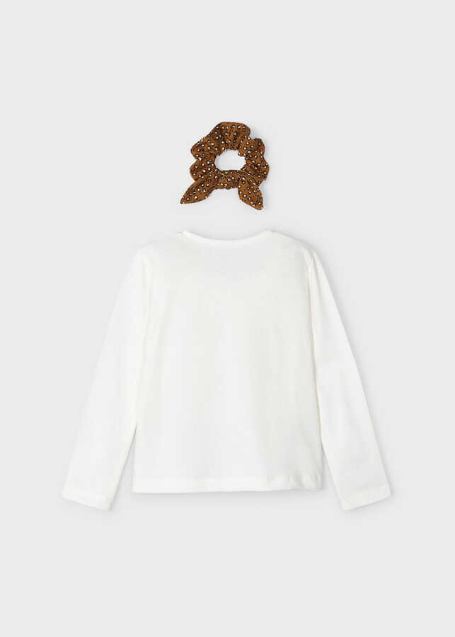 Kız Çocuk Tokalı Baskılı Uzun Kollu Tişört-Krem