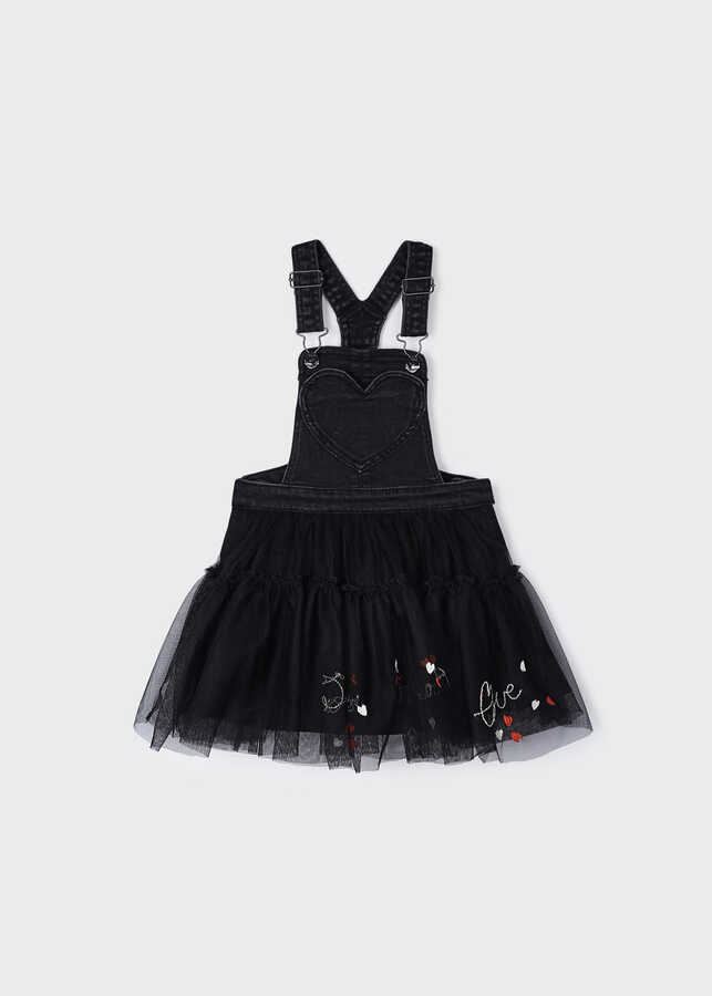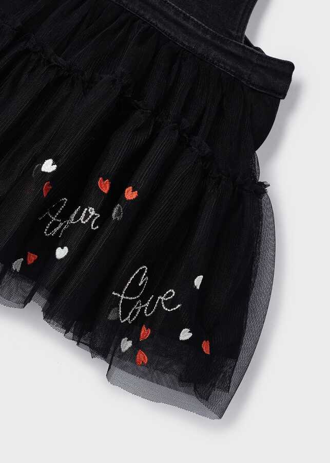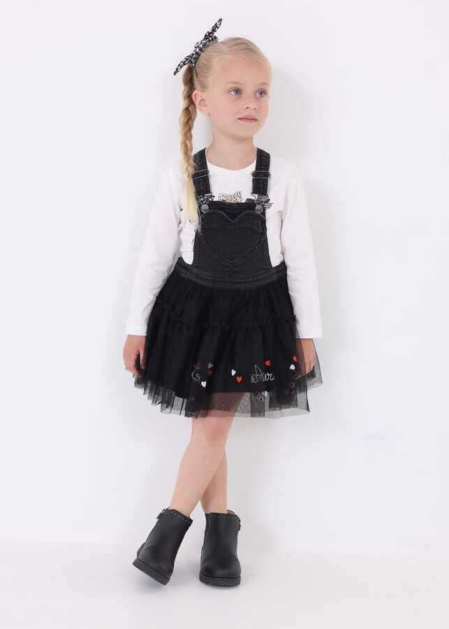 Kız Çocuk Tül Etekli Salopet-Siyah