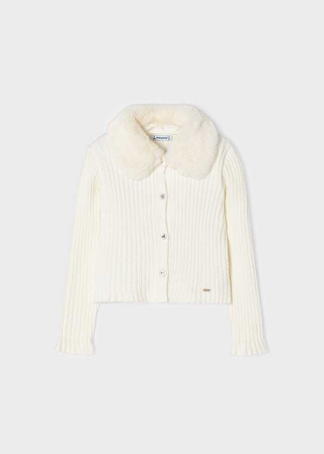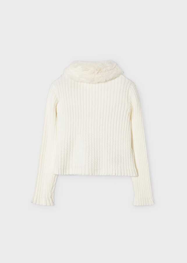 Kız Çocuk Yakası Kürklü Triko Hırka-Bej