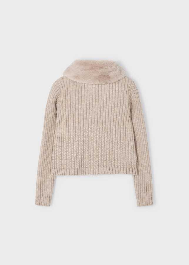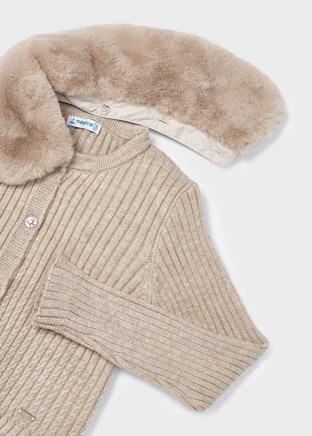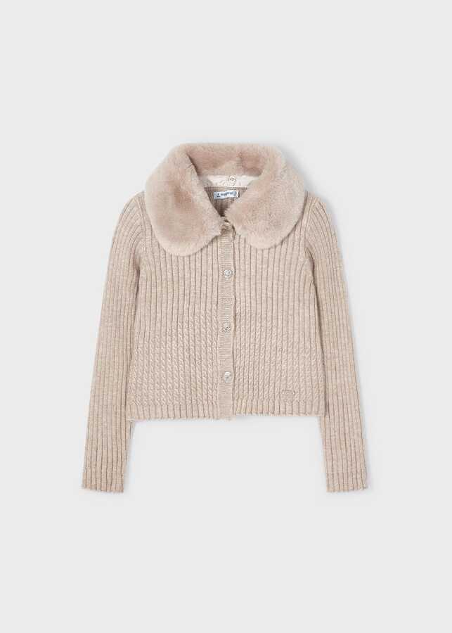 Kız Çocuk Yakası Kürklü Triko Hırka-Kahve