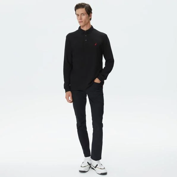 Erkek Classic Fit Uzun Kollu Polo - Siyah