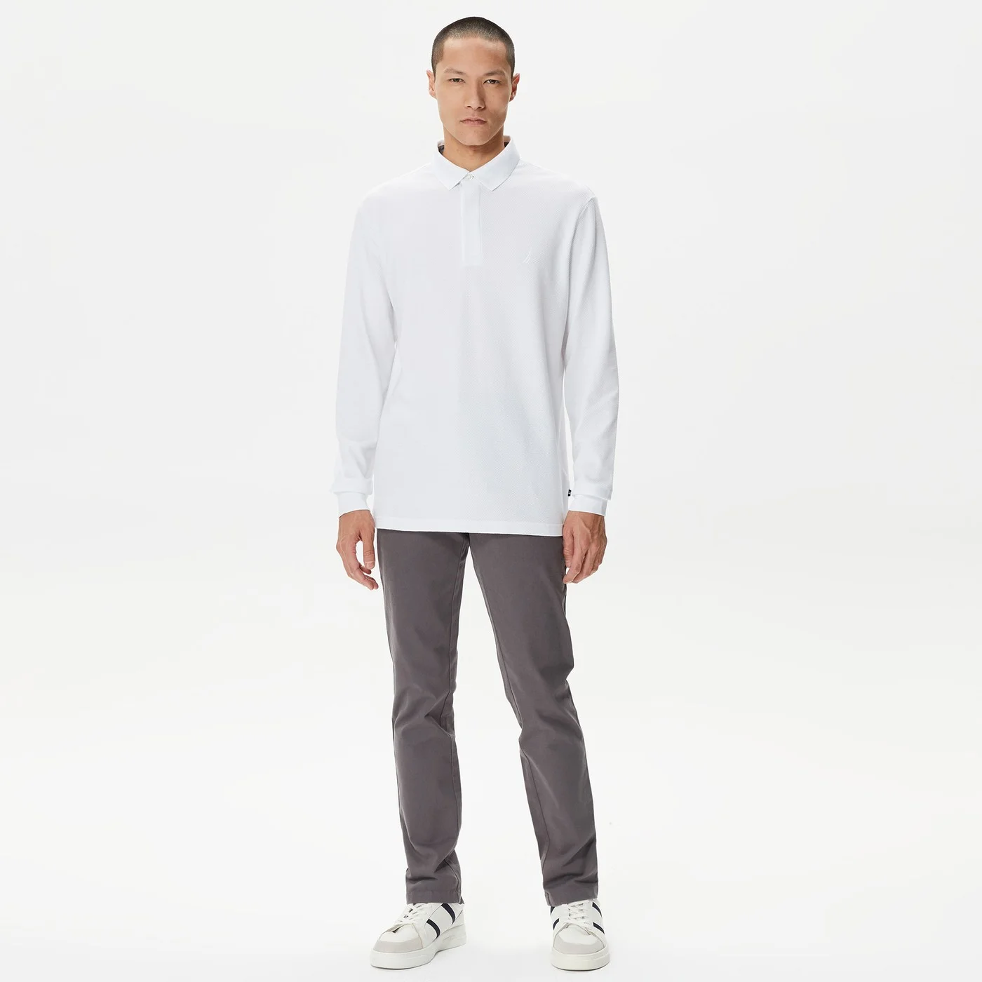 Erkek Slim Fit Uzun Kollu Polo - Beyaz