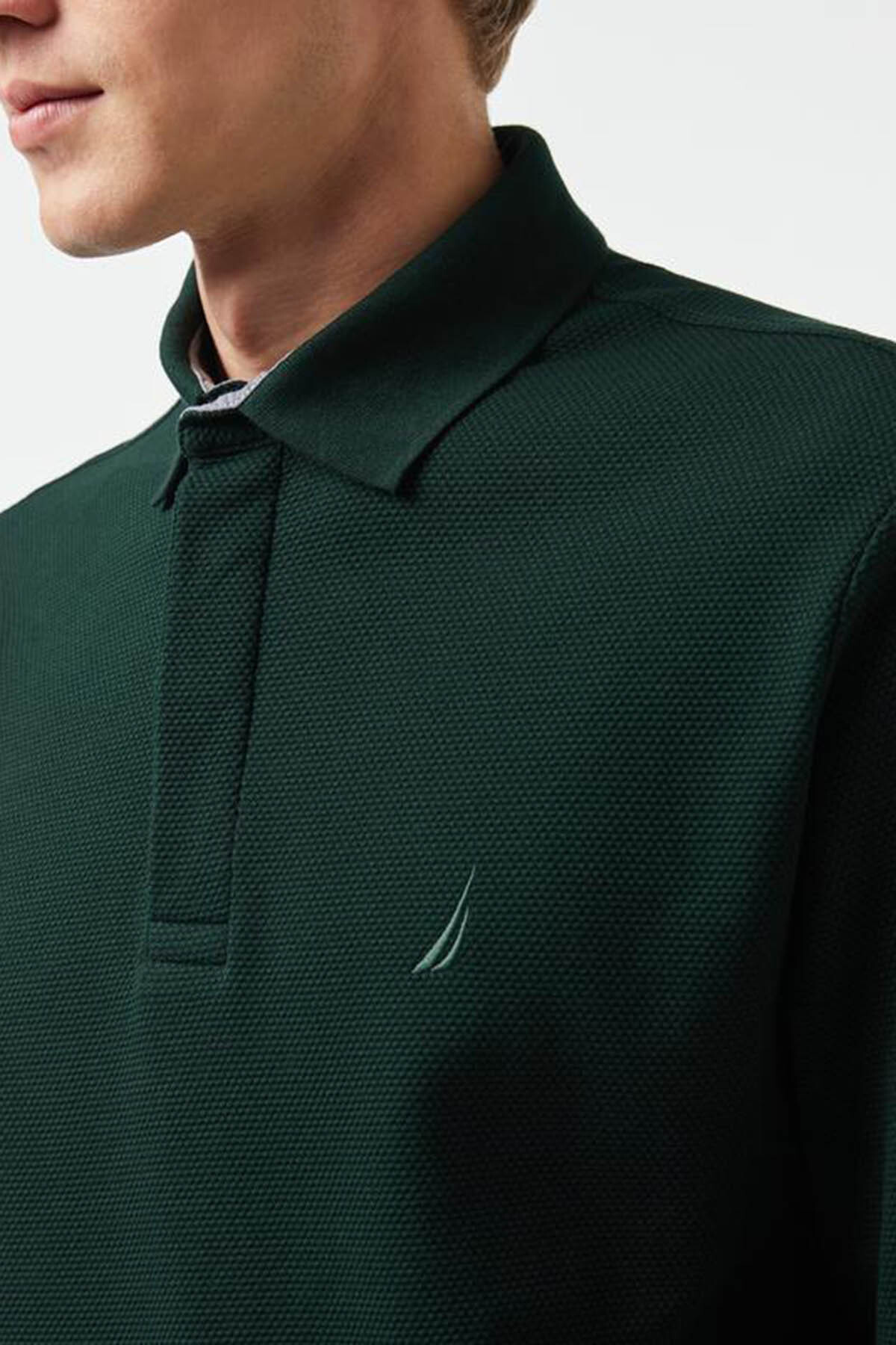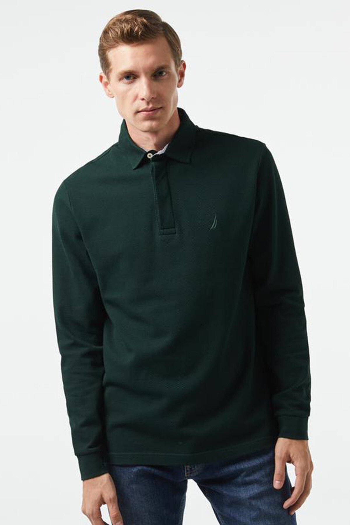 Erkek Slim Fit Uzun Kollu Polo - Yeşil