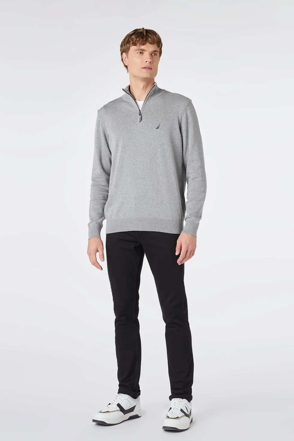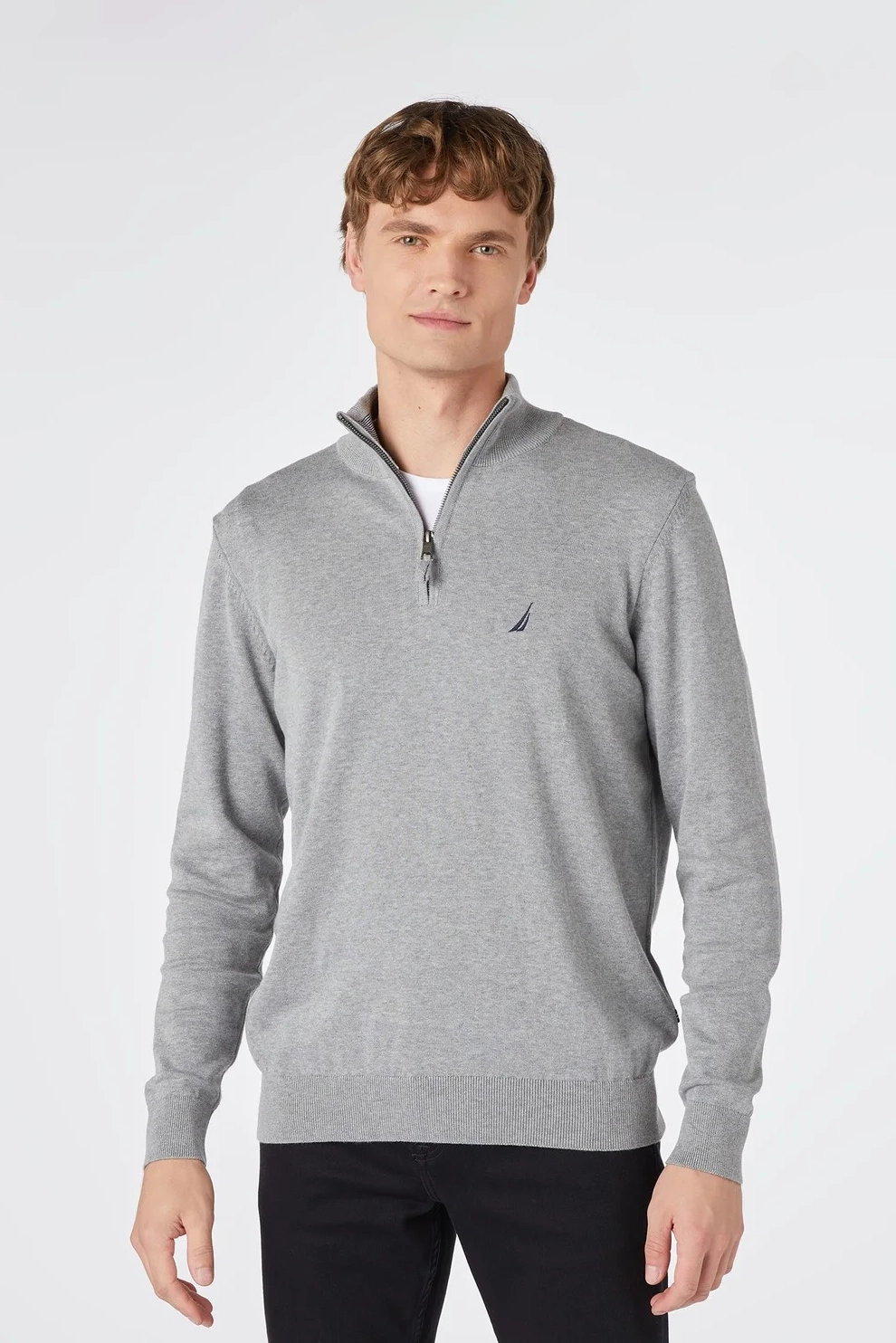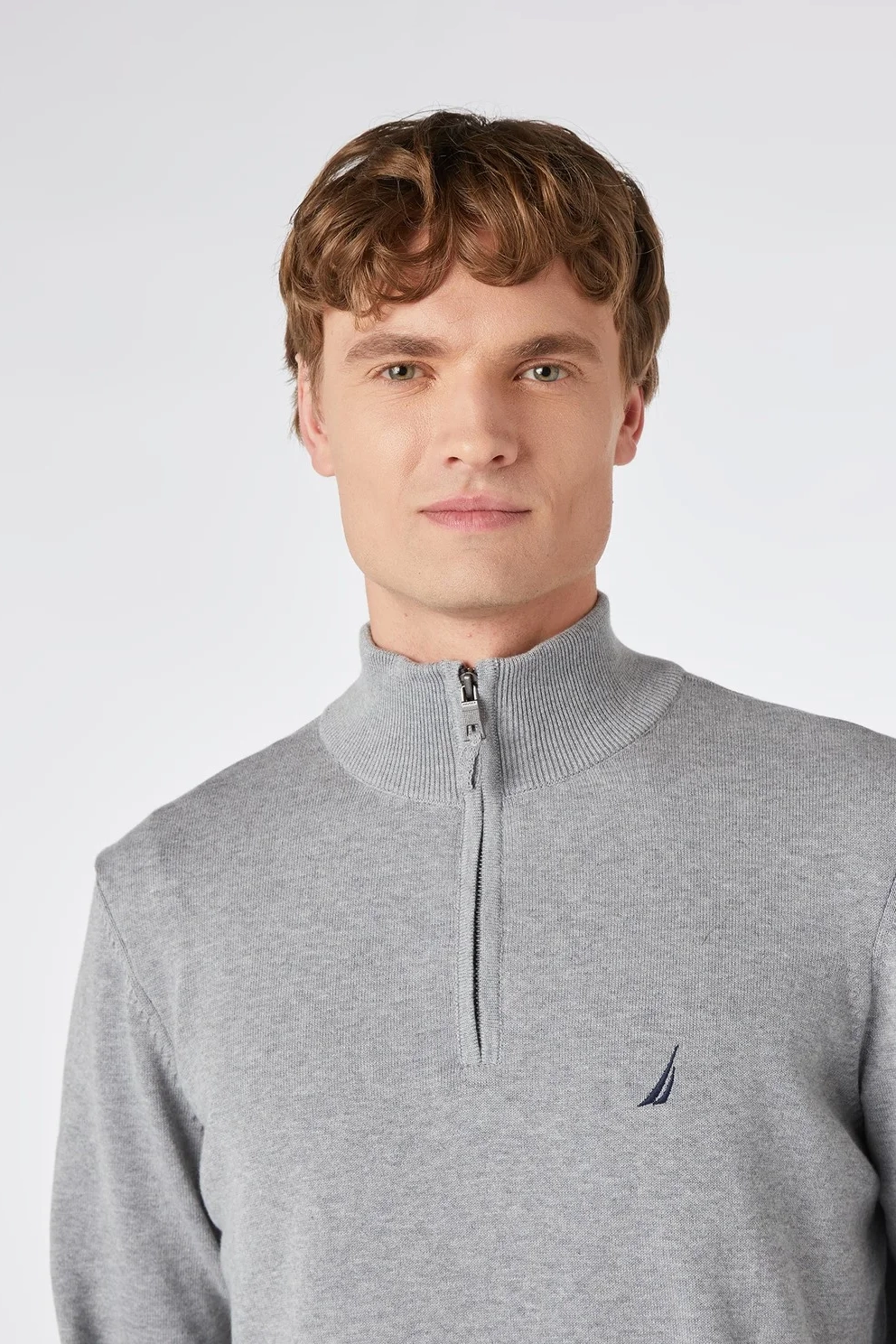 Erkek Standart Fit Dik Yakalı Uzun Kollu Triko - Gri