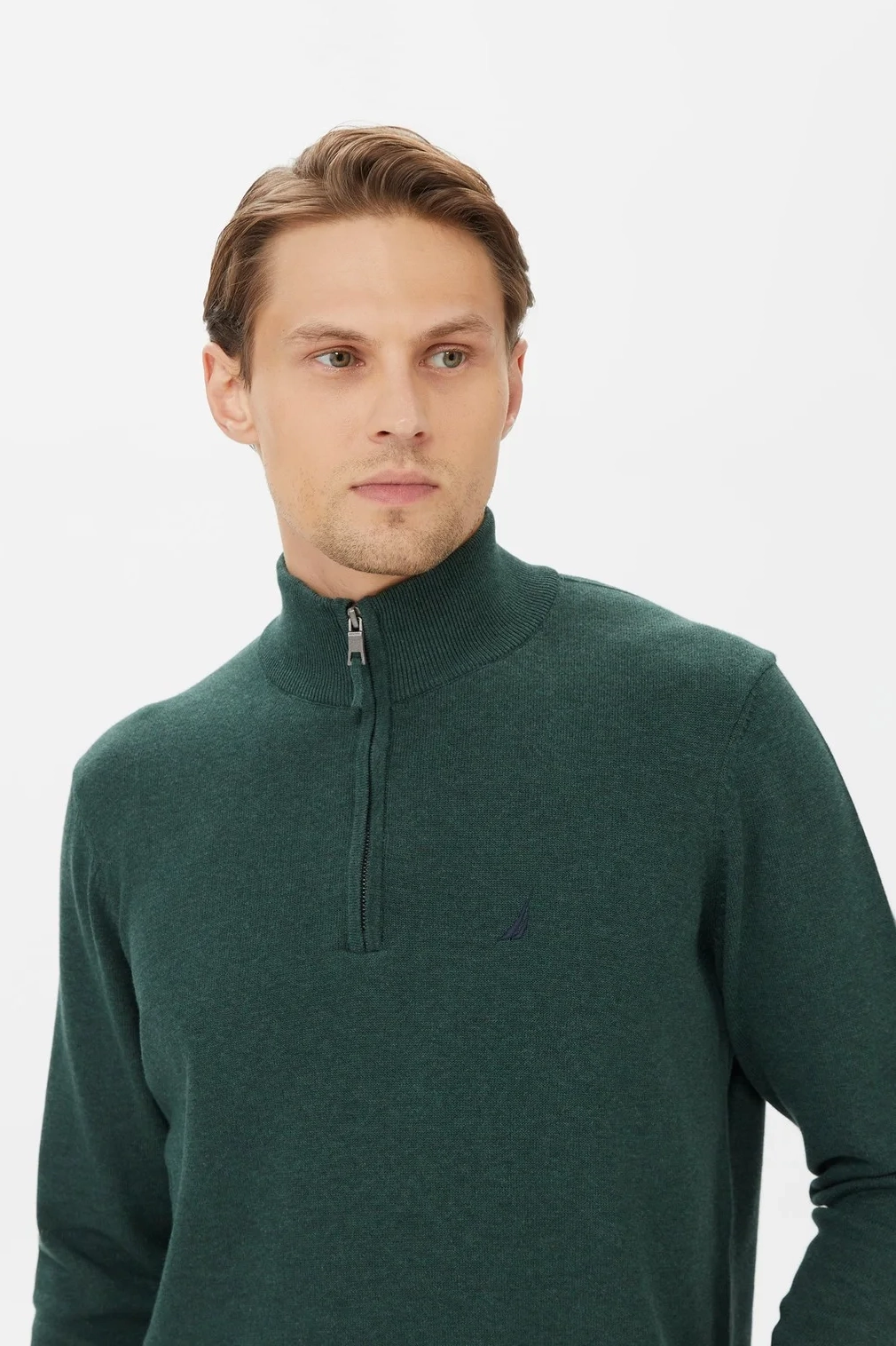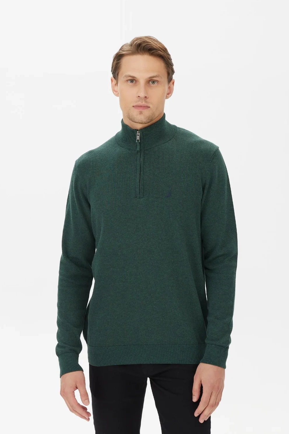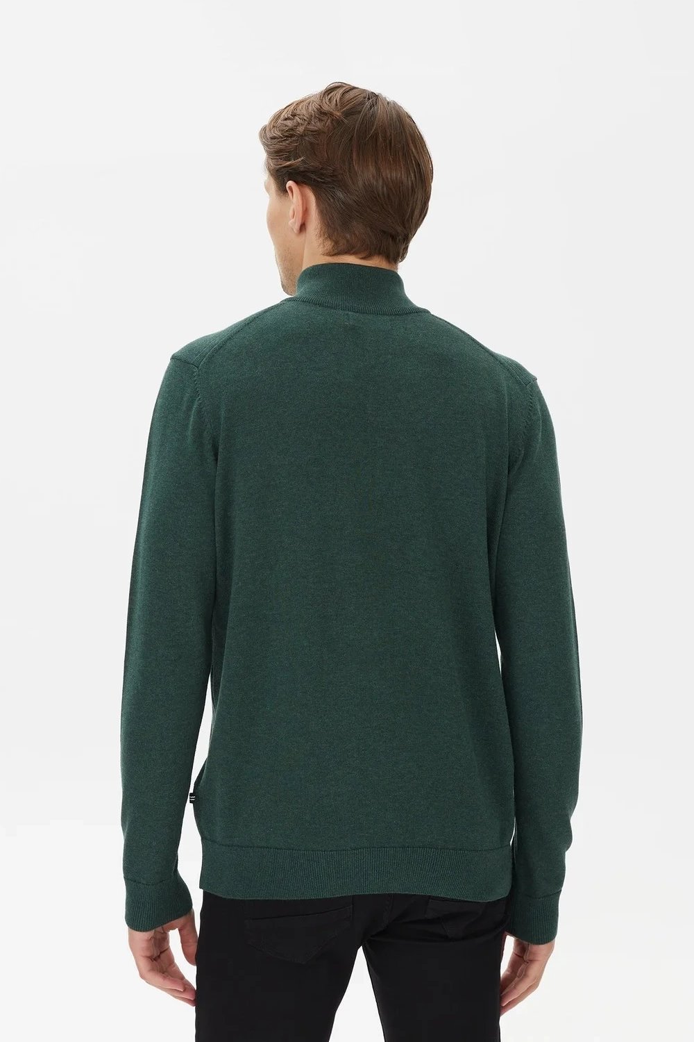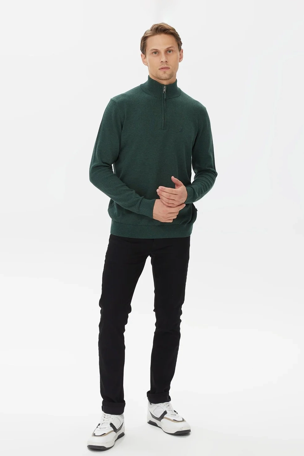 Erkek Standart Fit Dik Yakalı Uzun Kollu Triko - Yeşil
