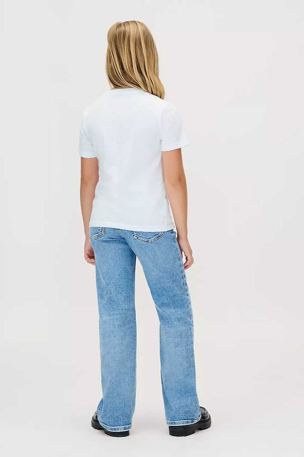Çocukların günlük konforu için özenle tasarlanan bu t-shirt, sürdürülebilir materyal kalitesini ikonik bir stille birleştiriyor. %100 rejeneratif pamuktan üretilen süprem (single jersey) kumaş yapısı, yumuşak dokusuyla hassas ciltlere uyum sağlarken nefes alabilen yapısıyla gün boyu ferahlık sunar. Saf beyaz rengi, hem denim pantolonlarla hem de eşofman altlarıyla kusursuz bir uyum yakalayarak her mevsim kullanılabilir.