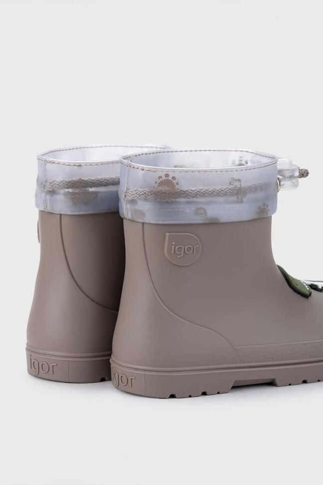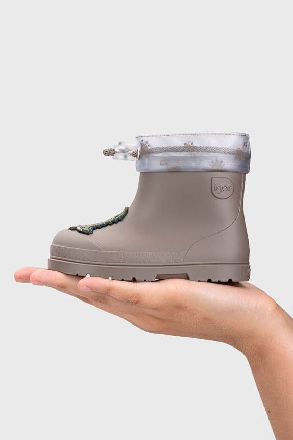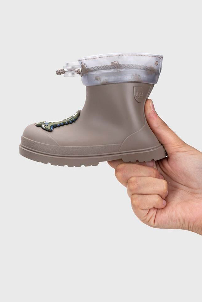 Yağmurlu günleri çocuklar için eğlenceli bir maceraya dönüştüren bu vizon renkli yağmur çizmesi, sevimli dinozor figürleriyle miniklerin favorisi olacak. İç kısmındaki yumuşak kürklü astarı (borreguito), soğuk havalarda ayakları sıcak tutarken konforlu bir kullanım sağlar. Şeffaf ve desenli konç kısmındaki ayarlanabilir büzgülü bağcık sistemi, suyun ve soğuğun içeri girmesini engelleyerek tam koruma sunar. Kaymaz taban yapısı ve esnek dış yüzeyi sayesinde çocukların güvenle koşup oynamasına olanak tanıyan, hem şık hem de fonksiyonel bir kışlık bottur.