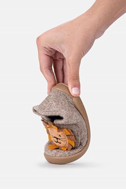 Minik kaşiflerin ev maceralarına eşlik edecek bu sevimli aslan figürlü panduf, konfor ve eğlenceyi bir araya getiriyor. Yumuşak dokulu yüzeyi ayakları gün boyu rahat ettirirken, cırtlı kapamasının üzerindeki sevimli aslan yüzü detayı çocukların hayal gücünü harekete geçirir. Bilekli tasarımı ayağı nazikçe sararak ekstra sıcaklık sağlarken, geniş cırtlı bandı sayesinde kolayca giyilip çıkarılabilir ve ayağa tam oturması için ayarlanabilir.