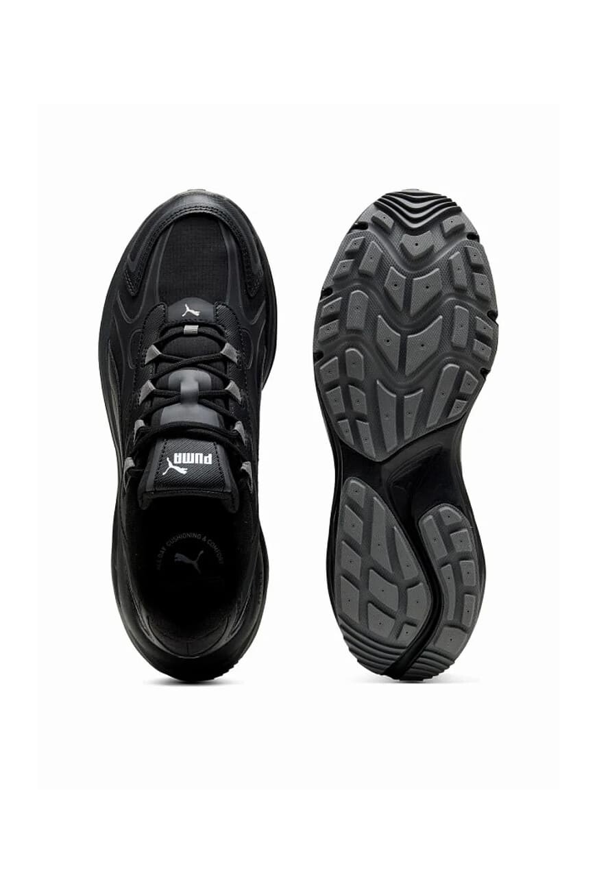 Dinamik tasarımı ve monokrom siyah rengiyle öne çıkan bu sneaker, adımlarınıza modern bir dokunuş katıyor. Günlük stilinizi tamamlamak için ideal olan ayakkabı, katmanlı dış yüzeyi ve dikkat çekici kalın taban yapısıyla konforu ve estetiği bir araya getirir. Bağcıklı kapaması sayesinde ayağınıza tam uyum sağlar ve sportif şıklığınızı bir üst seviyeye taşır. Yan kısmında yer alan ikonik şerit detayı, tasarımın karakterini güçlendirir.