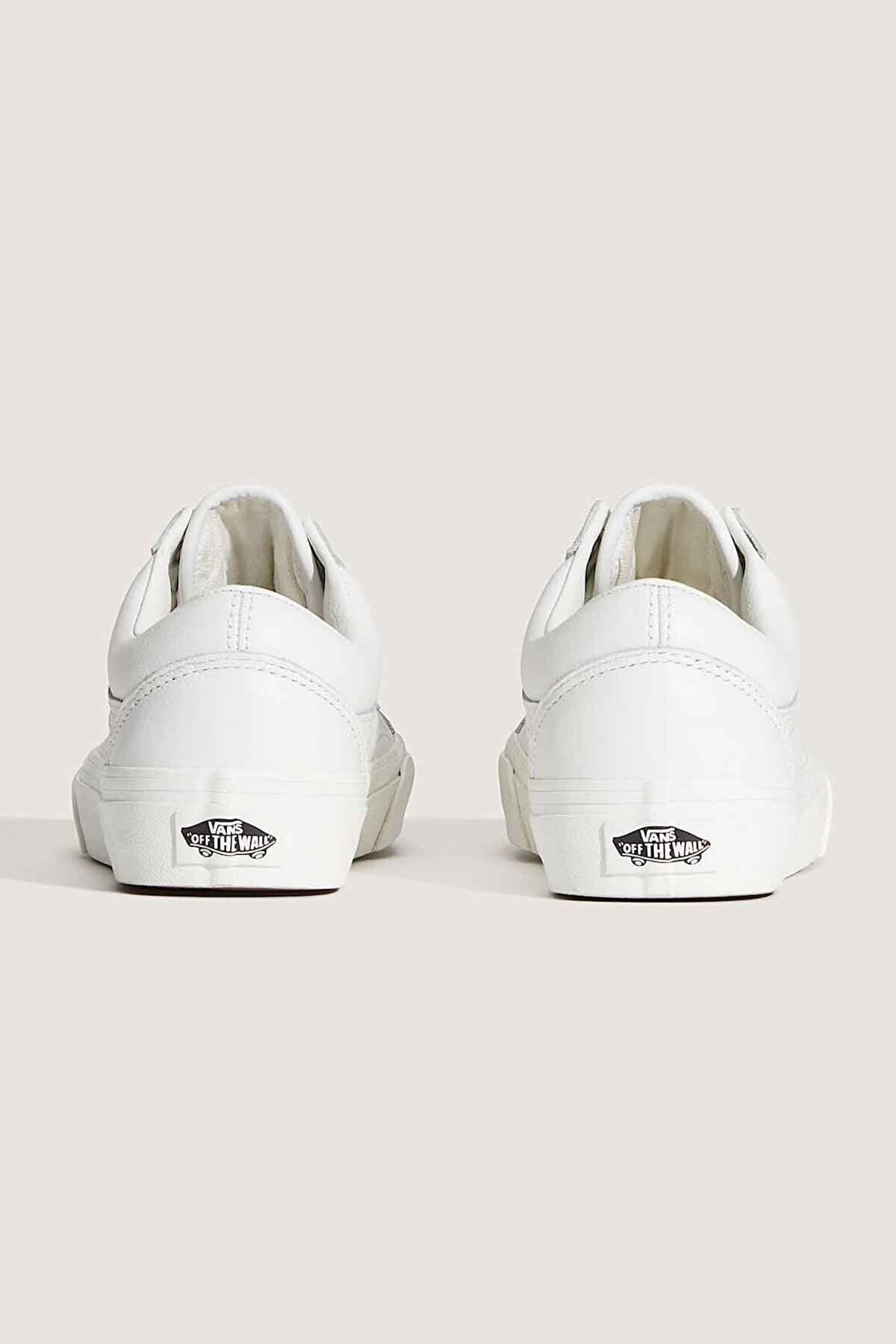 Vans'in ikonikleşmiş Old Skool modeli, bu versiyonunda şık deri sayası ile zamansız bir görünüm sunuyor. Tamamen beyaz (monokrom) tasarımı, markanın imzası olan dikişli yan şeridi (Sidestripe) ile klasik kimliğini korur. Dayanıklı deri yapısı uzun ömürlü bir kullanım sağlarken, dolgulu bilek kısmı ve waffle tabanı gün boyu konfor ve üstün zemin tutuşu sağlar. Hem kaykay performansları hem de günlük sokak stili için mükemmel bir tercihtir.