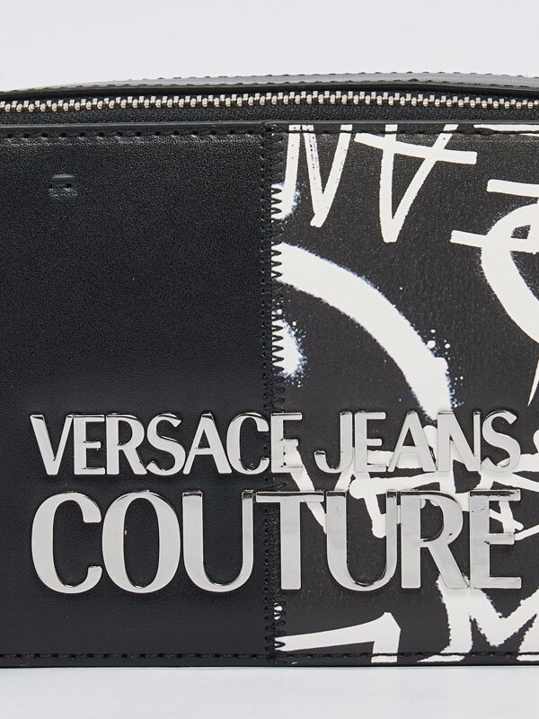 Versace Jeans Couture Con Logo Brush Nero-Bianco Omuz Çantası